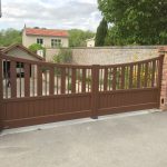 Nos clients ont choisi un modèle Paso Doble en forme cintrée. Le coloris du portail est marron (ral 8011 givré) afin de rappeler les menuiseries en bois de la maison tout en profitant des bénéfices de l’aluminium : sa robustesse et sa facilité d’entretien.